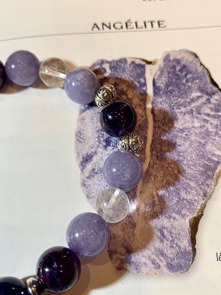 Bracelet Améthyste, Angelite et cristal de roche